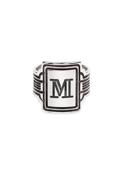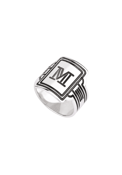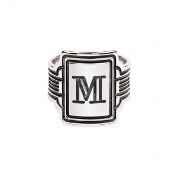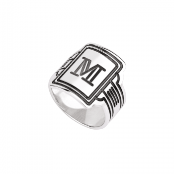 Our Santiago Letter Ring is a rectangular coat of arms-style cigar ring,, decorated with a unique and personalized motif of the letter of your choice.